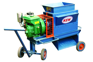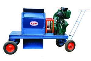 KEW make 3 HP Electric Motor / 5 HP Diesel Engine Shredder is suitable to shred agricultural waste like dried leaves, small branches of trees (upto 50mm Diameter), mulberry stem and cut pieces of coconut fronds etc., The power from the prime mover is transmitted to the shredder assembly. The Shredder assembly consists of 4 square plates which are connected by 4 nos. of stainless steel rods. Each rod has 9 nos. of rectangular blades, the total number of blades is 36 nos.